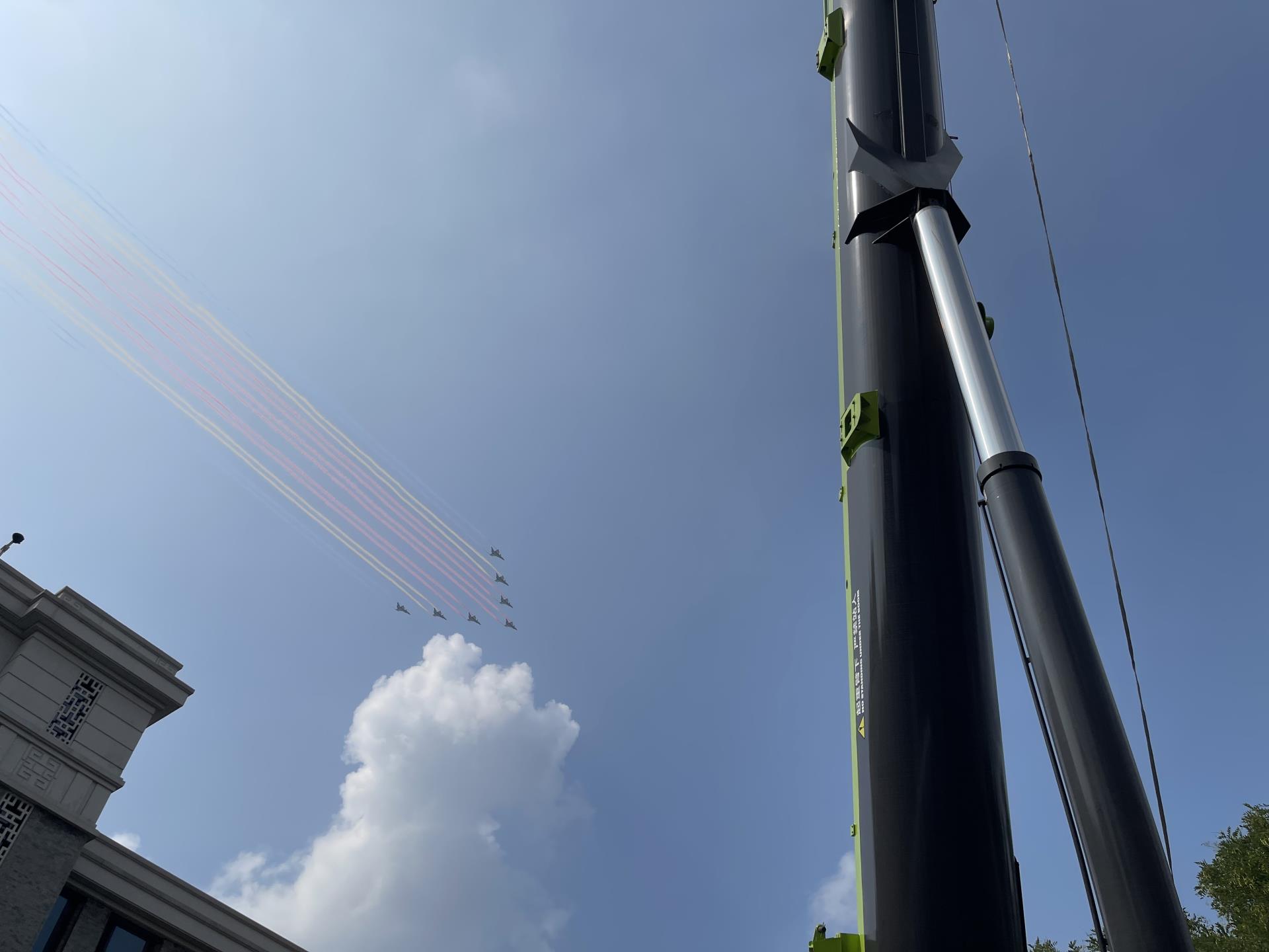 △乐发lv官网重科72米高空作业平台伸臂至长安街阅兵中线协助拍摄
